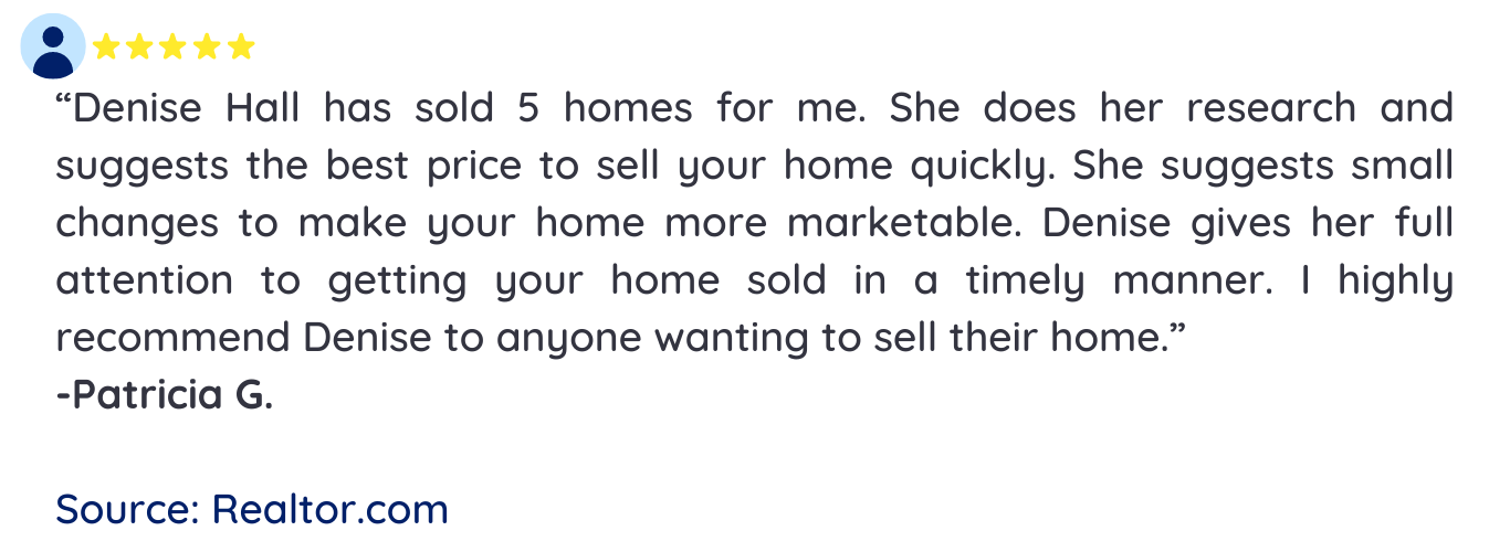 She can give you a realistic idea of what you might expect on a sale and she’ll focus on finding serious buyers. When you want a reliable partner in your real estate venture, Denise Hall is your best choice.